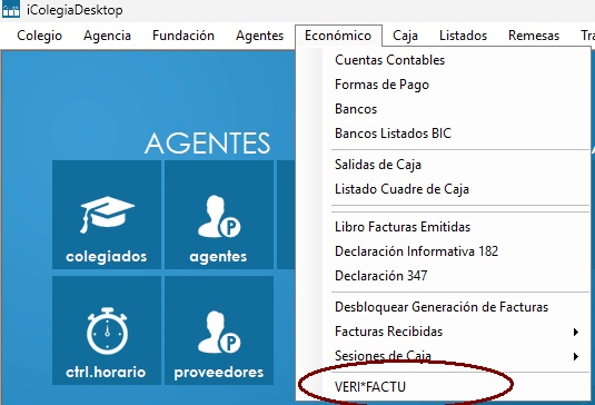 Existe la posibilidad de presentar todas las pendientes, en caso de que fueran muchas las facturas no presentadas, por un periodo largo de inactividad del servidor de la AEAT. Debemos ir a <Económico>-<Verifactu>:
