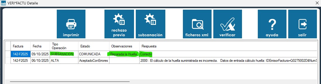 Si todo queda correcto veremos 2 líneas de comunicación para esta factura: